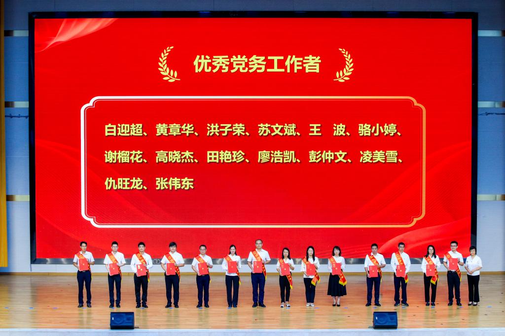 张龙、池潇潇、宣丙龙等16名教师荣获“优秀共产党员”;白迎超、黄章华、洪子荣等14名教师荣获“优秀党务工作者”;机电工程学院学生党支部、机关第四党支部荣获“先进基层党组织”。