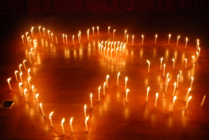 会上,首先由到场观众为汶川地震死难者默哀一分钟。随后,在由蜡烛组成的四川地图的烛光中郑衍华为我校师生展示了由南方都市报和南方日报摄影记者以及摄影爱好者们拍摄的关于地震主题的相片集,通过影像的方式回顾了5.12大地震的震撼场面、灾后重建工作和灾民的生活情况,让我们永远铭记5.12大地震。追思会在播放陈道明的诗歌朗诵作品《废墟上的敬礼》的视频后结束。