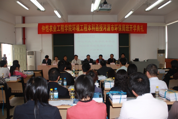 为了落实科学发展观,提高我院服务地方的水平,我院与河源市环境保护局共同努力,积极发动环保系统在职员工参加学历提高计划,并成功举办了首届仲恺农业工程学院环境工程本科函授河源市环保局班,为河源市环境保护事业发展培养专业人才。4月11日,仲恺农业工程学院环境工程本科函授河源市环保局班开学典礼在我院举行。河源市环境保护局赖志刚副局长、仲恺农业工程学院继续教育学院覃广泉院长、河源市污水处理厂林小平厂长等领导以及我院相关负责人出席了开学典礼。