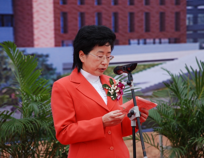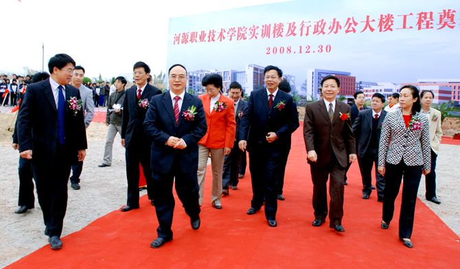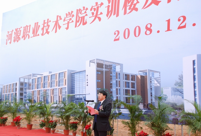 奠基仪式上,副市长叶维圆代表河源市委、市政府对我校实训楼及行政办公楼于今破土动工表示热烈的祝贺。她高度评价了我校所取得的各方面成绩,肯定了我校为社会和地方经济发展所作的重要贡献。她指出,近年来,学院快速发展,校园面貌焕然一新,已成为我市经济社会发展的一个亮点,是我市教育事业的一张名片,希望有关部门加强工程质量监管,按时按质完成工程建设,推动我校的基础建设,使之跃上新台阶。同时,她代表河源市委、市政府对我校提出三点希望:一、希望我校乘势而上,努力实现创建省级示范性高职院校目标;二、希望我校努力提高办学水平,实现规模、质量、结构、效益的协调发展;三、希望我校进一步加强与地方行业、企业和行政部门的联系,努力提高服务地方的能力。