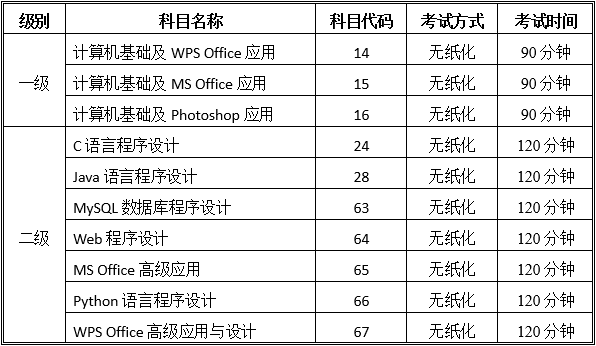 2024年3月全国计算机等级考试开考科目(时搏官方网站考点)