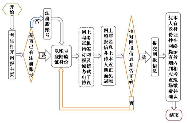 1.考生须在规定时间上网报名,注意不能重复报考同一科目,且只能选择一个考点考试,否则报名无效。考生最多可以同时报考2个不同科目。网上报名操作方法详见附件1:《全国计算机等级考试考生使用说明书》。考生网上填报流程如下: