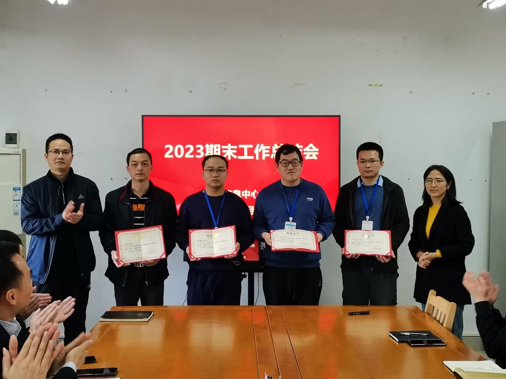 接着,年度考核优秀人员代表高源顺、运维年度考核优秀代表刘月林分别上台作优秀事迹汇报。中心主任杨文和副主任陶影为年度考核优秀人员和运维年度考核优秀人员进行了表彰,并颁发了荣誉证书。