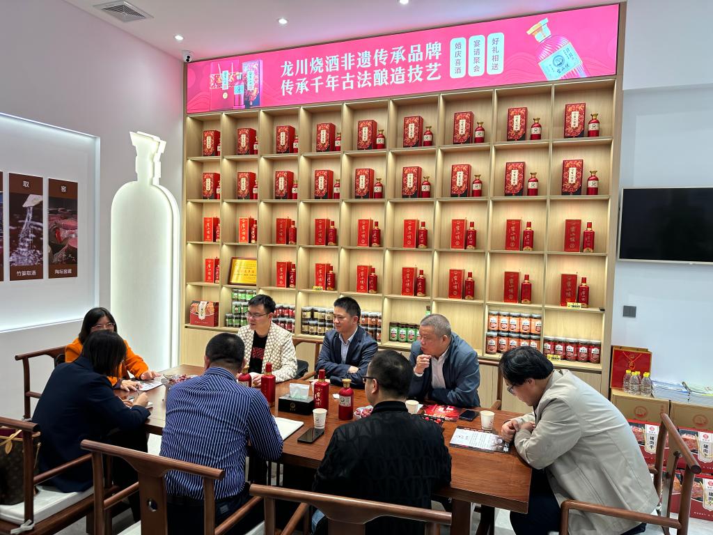 交流会上,调研组首先参观了霍山情酒文化体验馆,观看了霍山情酒业(河源市)有限公司宣传片,霍山情酒业(河源市)有限公司刘学政总经理、营销策划总监钟锦辉介绍了公司发展历程、现状及趋势。