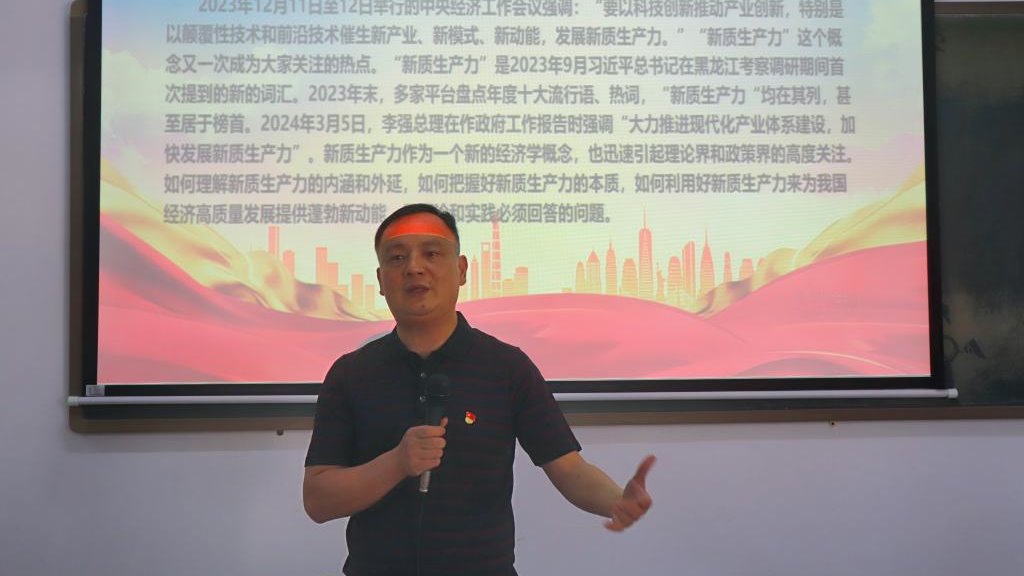 钟建坤同志从新质生产力的内涵要义和特征、加快形成新质生产力的理论与现实逻辑、加快形成新质生产力的着力点等三方面进行授课,使广大党员同志、教职工更好理解新质生产力的内涵和外延,把握好新质生产力的本质,清楚如何利用好新质生产力来为我国经济高质量发展提供蓬勃新动能。