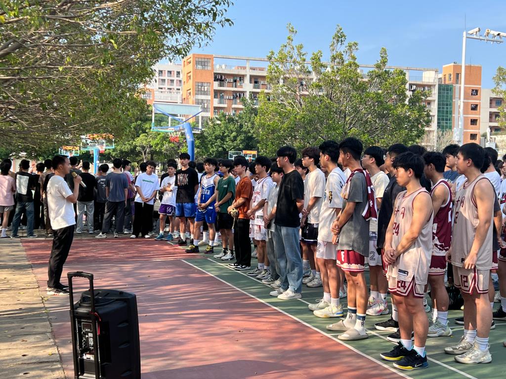 开幕式上,运动员代表、裁判代表依次发言,最后罗细兵老师发表致辞,他希望各参赛队员在赛事过程中要做到服从裁判、支持裁判工作,秉承“友谊第一、比赛第二”的运动精神,赛出风采,并号召各班同学积极到场为篮球队啦喊助威。