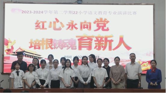 为弘扬爱国主义精神,坚定广大青年学生一颗红心向党走的信念,全面提高师范生专业技能以及综合素质, 老隆师范学院22级小学语文教育专业于2024年5月9日晚在行政楼C108举办“红心永向党,培根铸魂育新人”主题演讲比赛。