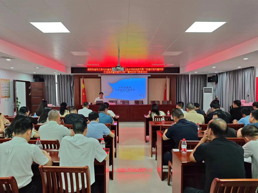 为深入学习习近平总书记关于党的纪律建设重要论述精神,推动党纪学习教育走深走实,进一步加强我校与地方党组织之间的双向联动,助力“百千万工程”。6月17日上午,人文艺术学院党总支联合源西街道党工委开展“党建引领共建共学、打造高质量发展共同体暨党纪学习教育”。人文艺术学院党总支副书记张超,源西街道党工委副书记曾园君,源西街道各村(社区)、机关、医院、“两新”党组织支部书记,人文艺术学院党员代表等参加。