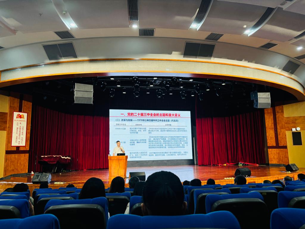 9月26日下午,老隆师范学院召开深入学习贯彻党的二十届三中全会精神专题宣讲会。宣讲会由党总支书记、院长杜伟祥主讲,全体教职工参加。