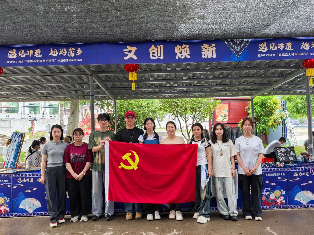 2025年5月4日-6日,“遇见非遗 趣游畲乡”暨2025年东源县“畲族蓝大将军出巡节”非遗旅游周系列活动在漳溪畲族乡黄龙岩景区内隆重举行。人文艺术学院师生团队受邀参与此次活动,围绕“非遗文创开发”“畲族服饰展演”“文化互动体验”三大主题,以创新设计活化畲族文化遗产,为广东省“百县千镇万村高质量发展工程”(简称“百千万工程”)增添文化动能与青春力量。