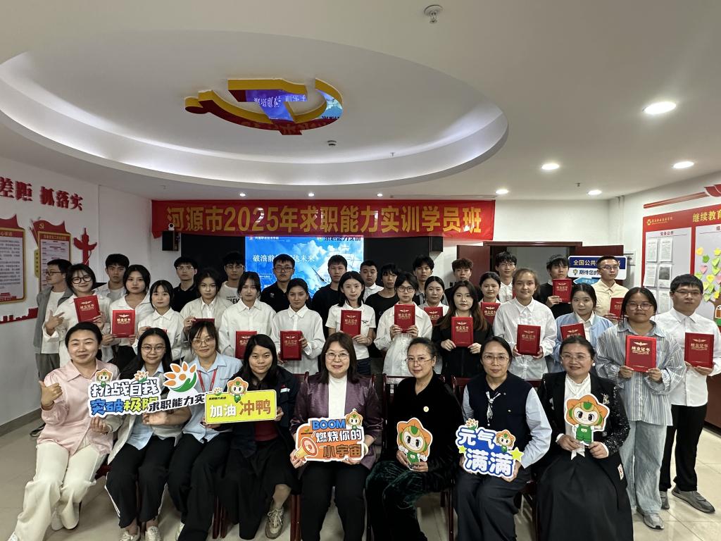 为增强我校应届毕业生的求职能力和提升就业竞争力,12月6日至12日,河源市人力资源和社会保障局联合我校开办2025年求职能力实训学员班,来自现代文秘、工业机器人等多个专业39名学员报名参加培训。