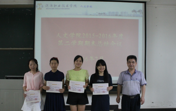 7月14日10点30分,人文学院全体教职工在教学楼C202召开2015-2016学年度第二学期期末总结会议,唐汉芳副校长出席会议。