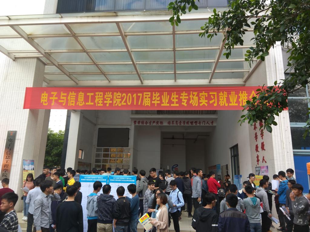 12月13日,电子与信息工程学院于学院一楼大厅举行了2017届毕业生专场实习就业推介会。陈农心副校长、学工处柳晓夫副处长及电信学院相关领导出席了推介会并指导。