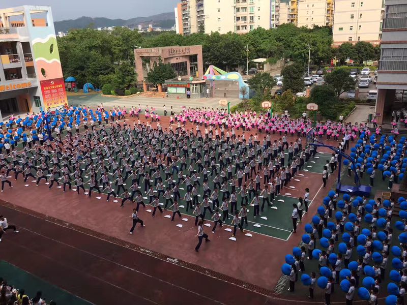 本项目由艺术与设计学院李娟娟与邱峰老师负责,进行 “少儿舞蹈与创编”课程的改革与实践。全程参与附小30分钟大课间活动的创编、导演与排练工作。该项目根据年龄特点与运动需求,融汇中国传统文化与艺术,分成了8个内容:1.踏步操;2.伸展活动热身操; 3.跑步操;4.一二年级版块校园集体舞;5.五六年级版块传统武术操;6.三四年级版块民族舞韵律操;7.放松操原地集体舞;8.跑步操。里面融合了藏族、蒙古族、维吾尔族、朝鲜族、傣族、彝族、佤族等多个中国少数民族民间舞蹈的风格韵律特点,让小学生在有限的空间内,每天饶有兴趣地进行30分钟的室外运动。在运动中,获得中国传统文化的熏陶,进而由外至内地升华为爱国情怀。