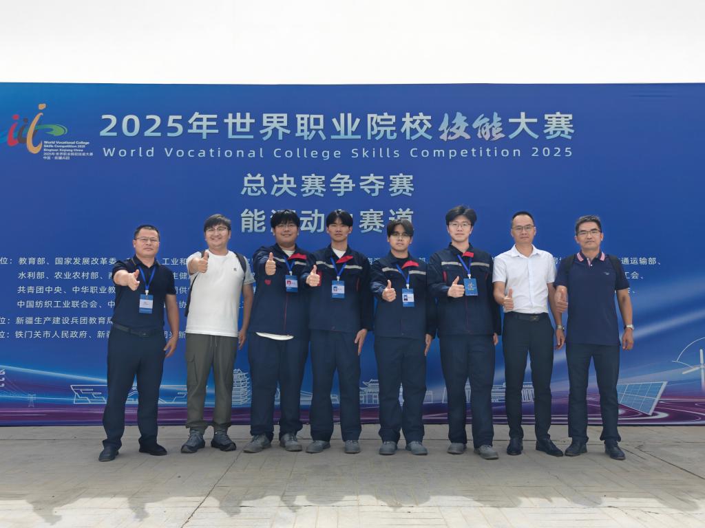9月6日至9日,2025年世界职业院校技能大赛总决赛争夺赛能源动力赛道高职组在兵团兴新职业技术学院举行。来自全国29个省区市和兵团的102支参赛队伍齐聚一堂、同台竞技、展示风采,我校电信学院苏文斌、罗坤明作为指导老师,带领黄金文、洪楚武、纪梓欣、吴书堉四位同学参加此次竞赛。参赛队伍在比赛中突破重重困难、发挥出色,展现出扎实的专业基础和综合素养,成功斩获银奖。