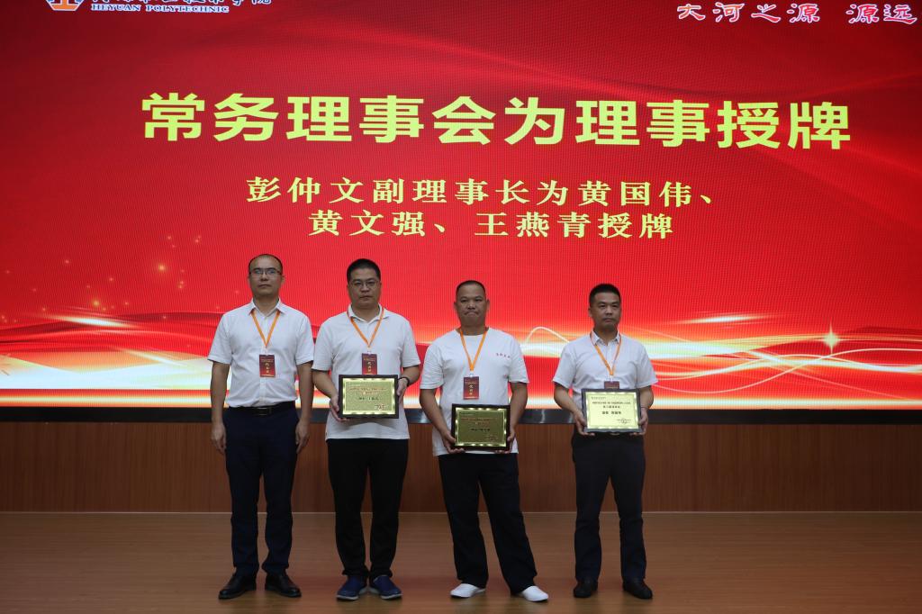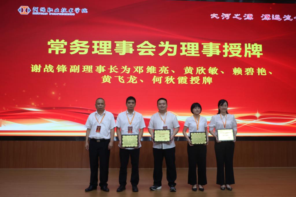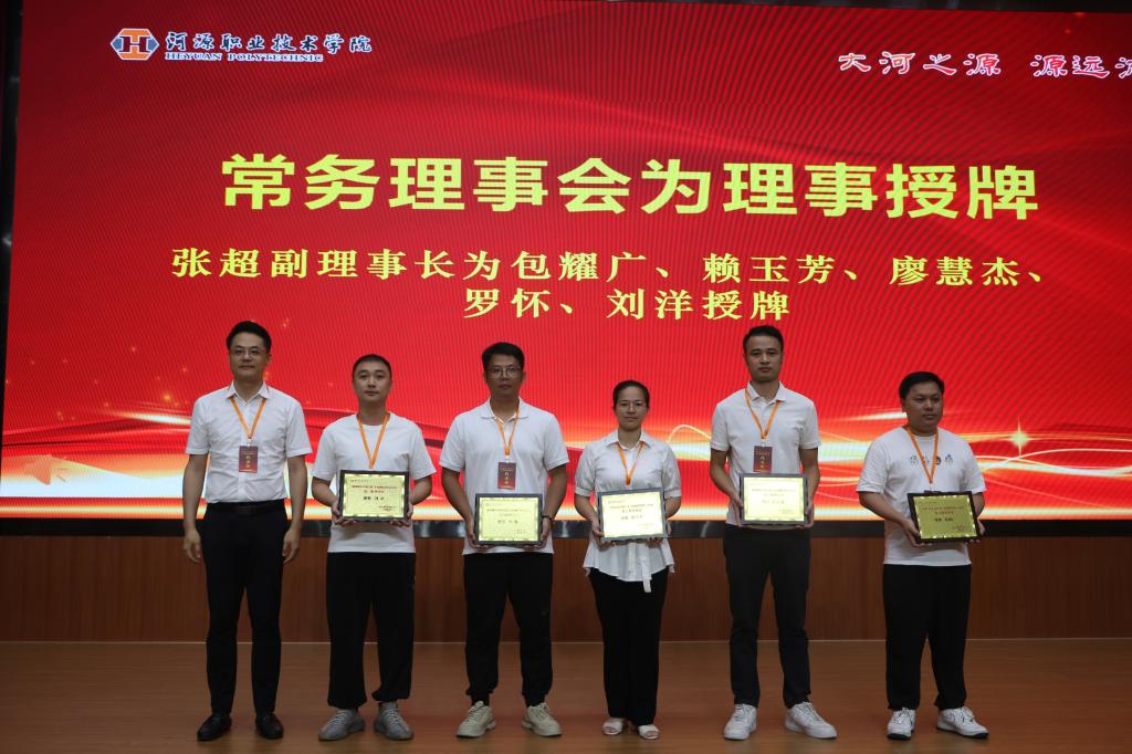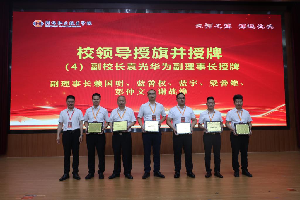 副校长赖小景为副理事长黄舒、刁桂辉、刁艺锋、高国荣、何运红、黄国兵、黄海城授牌