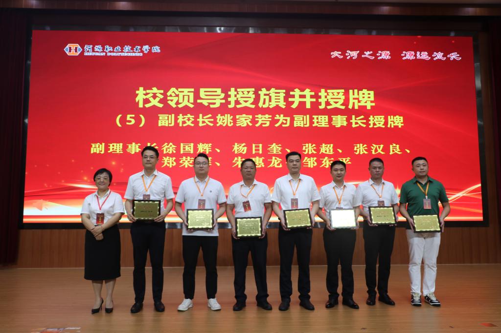 副校长姚家芳为副理事长徐国辉、杨日奎、张超、张汉良、郑荣辉、朱惠龙、邹东平授牌